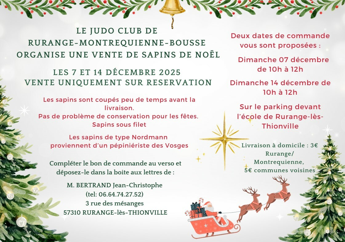 Cette année encore le judo club de Rurange organise une vente de sapin de Noël, et comme chaque année nous vous proposons les PLUS BEAUUUUUUUXXXX SAPINS .