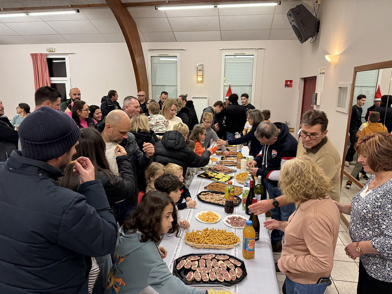 Les festivités ont débuté en douceur avec un magnifique chant de Noël interprété par les enfants du club. Une prestation si réussie qu’elle a immédiatement attiré… le grand barbu vêtu de rouge 🎅, arrivé sous les applaudissements (et quelques regards très concentrés pour vérifier qu’il ne portait pas de ceinture noire).